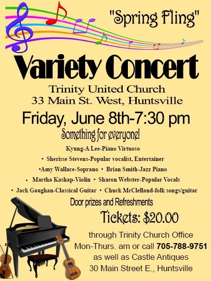 Tickets are $20.00 and are available through Trinity United Church Please call